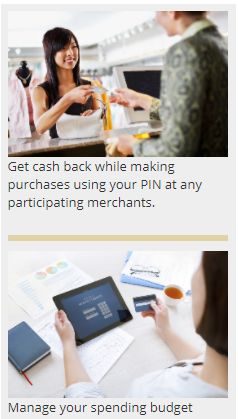 - Save on ATM fees* and time. Get cash back while making purchases using your PIN at any participating merchants. Save a trip to an ATM or a branch.